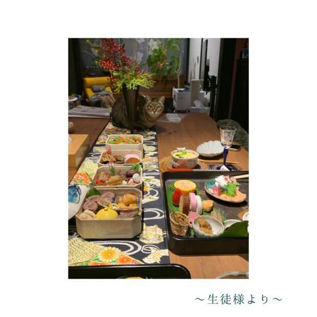 (※写真はすべて、生徒さんたちのご自宅のおせちです。)